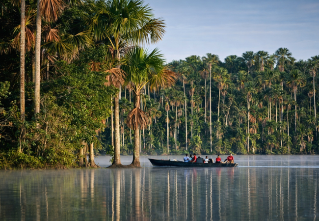 Llegaremos al imponente Lago Sandoval, donde abordaremos un bote de remos para explorar sus aguas tranquilas, hogar de pirañas, tortugas, mariposas, monos y la Nutria Gigante del Amazonas, una especie en peligro de extinción. - Por la tarde regresaremos al lodge para descansar y disfrutar de la cena.